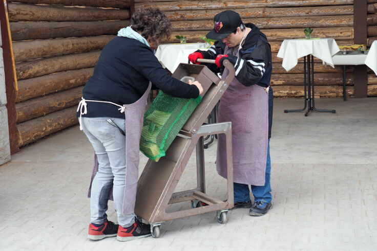 Lediglich in wenigen Wochen während der Corona-Pandemie musste das Angebot ausgesetzt werden. Anschließend hat es auch eine Weile gedauert, bis die Menschen mit Behinderung ihre gewohnte Arbeit wieder aufnehmen konnten. Aber mittlerweile sind alle wieder mit großem Einsatz bei der Sache. „Dass Sie sich mit Ihrem Familienbetrieb diesem gesellschaftliche Auftrag widmen, Menschen mit Behinderung zu integrieren, finde ich sehr beeindruckend“, lobte der Calwer Landrat Helmut Riegger. „Sie sind mit Ihrem Engagement ein Vorbild für andere. Machen Sie weiter so.“