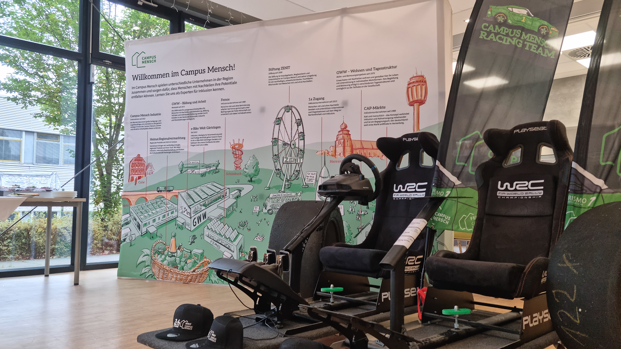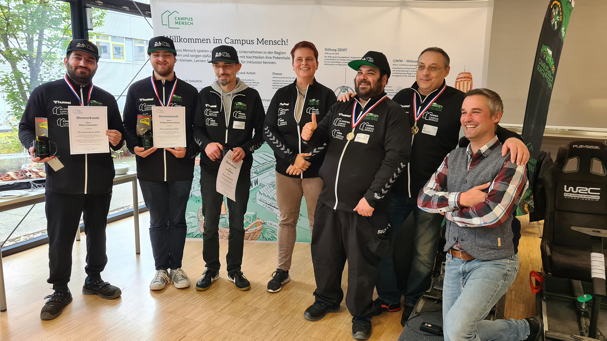 Diese drei Campus Menschen - in ihrer Freizeit begeisterte Racing-Fans - wollten einfach ihre Leidenschaft mit Menschen mit Behinderung teilen. So entstand das erste europäische inklusive E-Sport Team des Campus Mensch.