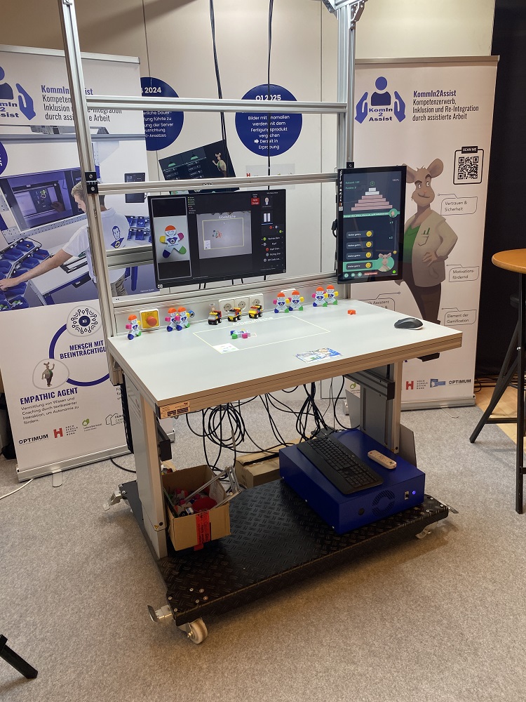 Ein besonderes Highlight war der Vortrag „Bundesprojekt KomIn2Assist – Abschlusspräsentation + Demonstration“ vor breitem Publikum. Dabei wurden nicht nur Ergebnisse präsentiert, sondern auch gezeigt, wie dieser Ansatz in der Praxis wirkt.  Viele hatten zum ersten Mal die Gelegenheit, den Assistenzmontagetisch selbst auszuprobieren und zu erleben, wie er Sicherheit gibt und Arbeitsschritte leichter zugänglich macht.