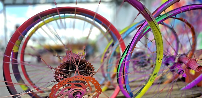 - Ein Duzend Fahrradfelgen genossen die Zuwendung der Kinder in Form von diversen Sprayfarben.